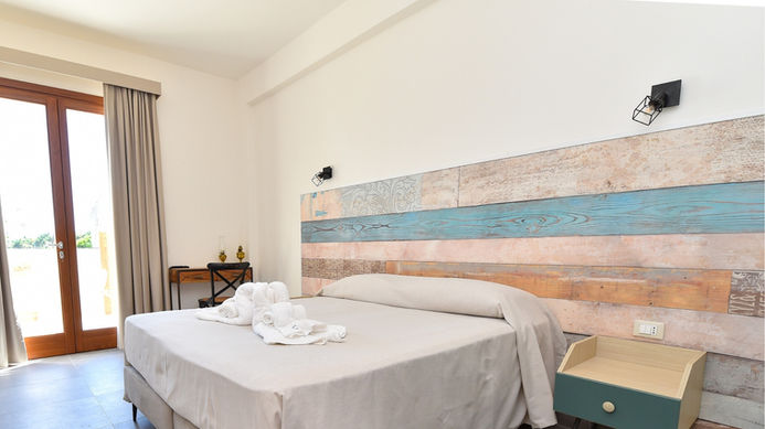 -Le due camere, una matrimoniale ed una tripla (all'occasione), sono composte da: letti sommier con possibilità di letti singoli o matrimoniali, comodini, appendiabiti, scrivania, sedia, specchio, set biancheria da camera e set biancheria da bagno nonché set cortesia con prodotti da bagno. Ogni camera ha un bagno (con phon, portaoggetti ecc) e veranda privata (con tavolo e sdraio).